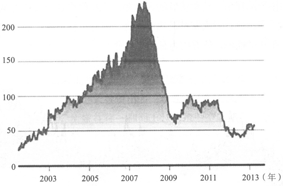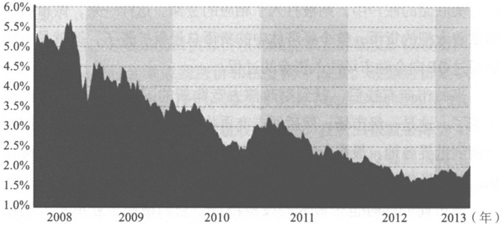 2001—2013年美国债券市场做市商的公司债务库存(10亿美元)
