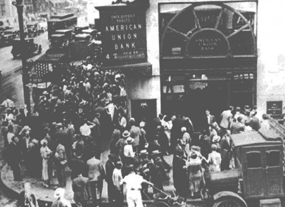 如此规模的黄金被抽出美国的货币系统,致使美国银行的信贷基础被严重削弱。没了信贷抵押物,大量放出的贷款必须马上收回,而现在大家都缺钱,贷款人根本无法偿还贷款,只有被迫跳楼甩卖资产,大家一起抛,结果谁也跑不了。于是,在欧洲人抽走黄金的5周之内,美国银行大规模倒闭了522家!到1931年底,银行倒闭已达到惊人的2294家!美国2万家银行,已破产了1/10,同时损失了17亿美元的老百姓储蓄。