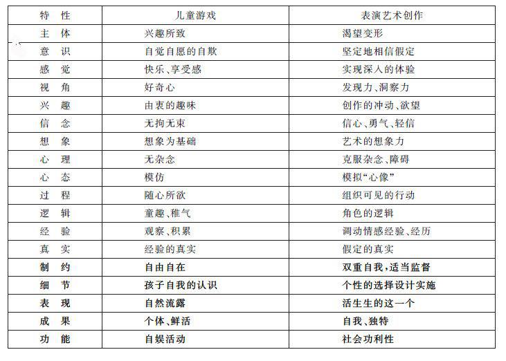 由此,我们对照一下“游戏”与“表演艺术创作”的特性,见表1-5-1。