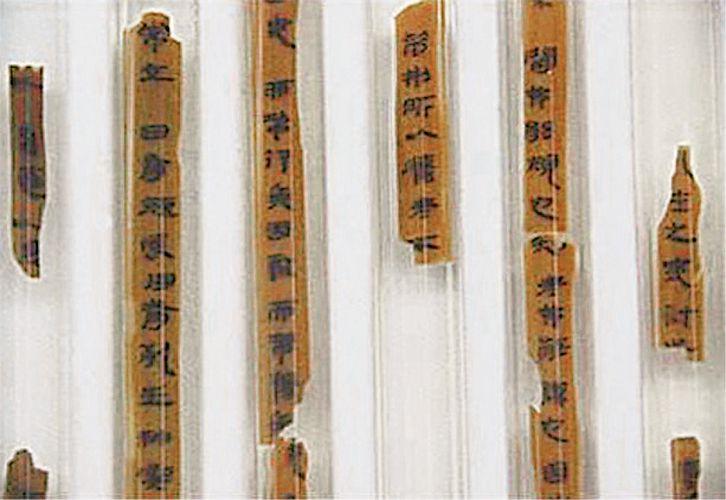 Bamboo strips inscribed with the text of Sunzi's Art of War . Discovered buried in a tomb from early Western Han Dynasty on Mount Yinque, in today's Shandong Province, this is the earliest version of the book discovered so far.