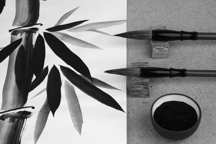 常用制墨原料有油烟、松烟两种,制成的墨称油烟墨和松烟墨。油烟墨为桐油烟制成,墨色黑而有光泽,能显出墨色浓淡的细致变化,宜画山水画;松烟墨黑而无光,多用于翎毛及人物的毛发,山水画不宜用。