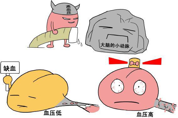 为什么高血压病患者易患脑血管意外呢?因为脑部小动脉收缩程度与血压增高程度有密切关系。一般来说,血压升高程度轻且持续时间短,不致引起严重脑部病变。如果血压持续中等程度以上的升高,则可导致脑部小动脉肌肉层玻璃样变和管腔变硬,使脑部小动脉失去了随全身血压波动而收缩和扩张的机能,当血压下降时即可引起脑部灌注不足而导致脑组织缺血;当血压升高时可引起脑血流灌注过度增高而导致脑充血、水肿或出血。