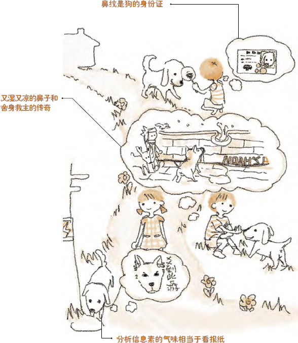 要读懂狗的心思,我们首先要了解狗的嗅觉,这是因为狗的大脑活动在很大程度上都围绕着狗通过气味获得的信息来进行。和人类进行比较可以知道,狗类能够识别的气味种类是人类的1000—10000倍。