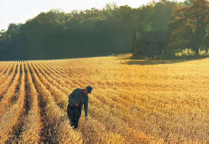 资本最重要的用途是用于研究土地,劳动和资本是怎样有助于产生国民收入的,以及国民收入怎样分配这三个要素。在马歇尔的理论中土地还包括一切产生收入的自然的赠予,如矿山、渔场等。图中美国俄亥俄州农场主巧妙地利用土地,将大豆、玉米和干草等植物间种在一起,这样会得到更多的收获。