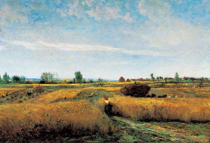一般来说,地租的数额大致等于租地人按照土地实际情况,其预期收益减去购买生产资料及基本生活资料费用后所能支付的最高价格。地租不仅包括土地的租金还包括这块土地带来的收成的一部分。图中是杜比尼描绘的田原风光,土地收入的最重要部分就是地租。