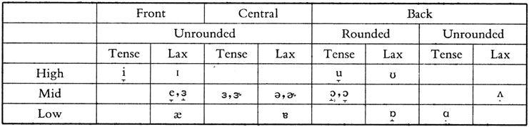 ● the length or tenseness of the vowel (tense vs. lax or long vs. short), and