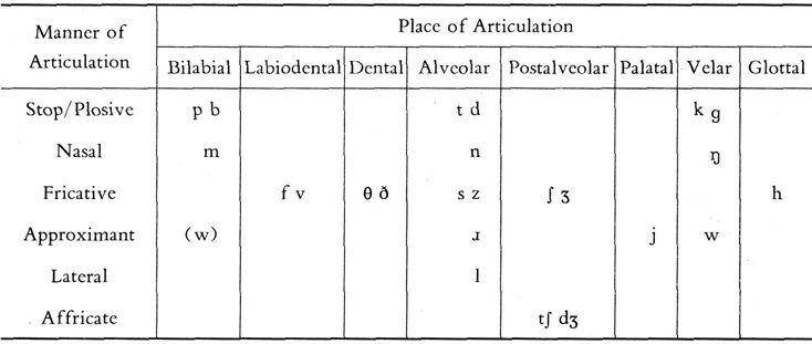 Table 2.6 Distinctive feature matrix for English consonant phonemes