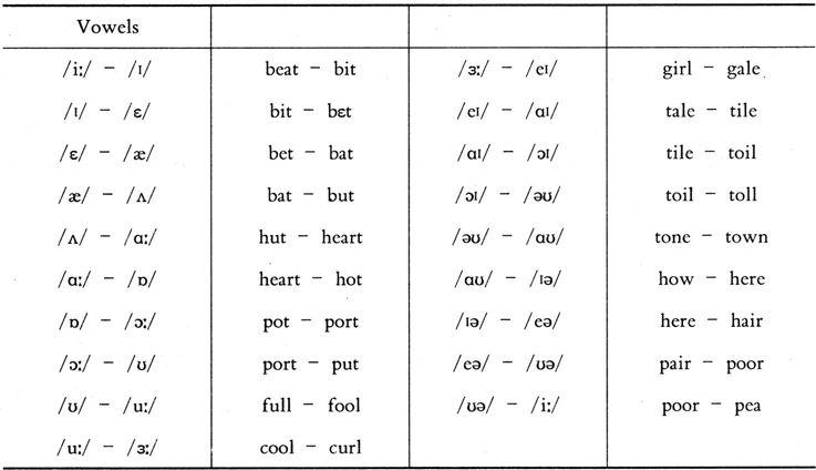 Several things need to be explained here. Firstly, the idea of TENSENESS is introduced to indicate the difference between [i] and [ɪ], [ɜ] and [ə], etc. In the traditional classification of English vowels, they were said to be different in length, thus noting them as [iː] and [i], [əː] and [ə], and so on. Later, however, it was argued that they were not just different in length but they were simply different sounds. As vowels tend to be shorter before voiceless consonants, the length of [ɪ] in bid is about the same as that of [i] in beat. The difference in quality is more prominent: [i] and [ɪ] are simply different sounds, the former being pronounced with more tension. Therefore, many people simply use the different symbols to indicate the difference in quality between these pairs of sounds and ignore the length symbol [ː].