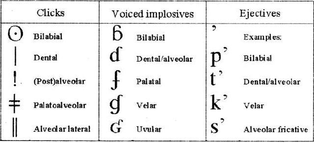 (Source: Roca & Johnson, 1999: 190. Note that where symbols appear in pairs, the one to the right represents the GA counterpart.)