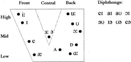 Various forms of symbols have been used for the representation of English vowels by different writers and, in this book we will follow that of Wells (2000) for the transcription of RP vowels, shown in Table 2.2. Remember that this is by no means a reproduction from the IPA chart. Instead, it is a modified version based on the IPA for making things easier.