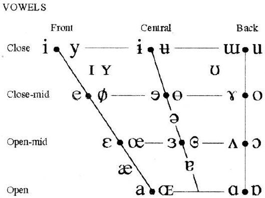 As the vowels cannot be described in the same way as the consonants, a system of cardinal vowels has been suggested to get out of this problem. The CARDINAL VOWELS, as exhibited by the vowel diagram in the IPA chart, are a set of vowel qualities arbitrarily defined, fixed and unchanging, intended to provide a frame of reference for the description of the actual vowels of existing languages.