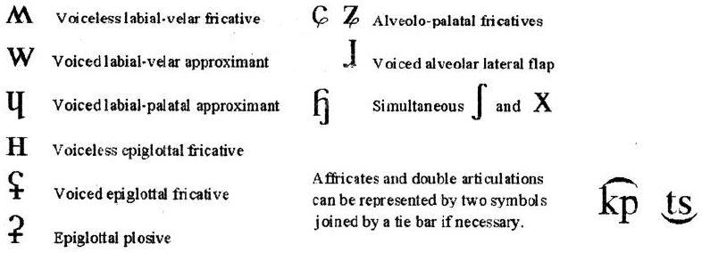 The "other symbols" are actually a group of consonants that involve more than one place or manner of articulation, which cannot be placed into one of the slots in the consonant chart.