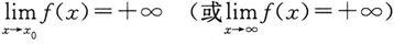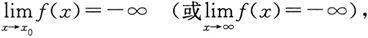 只是一个记号,并不代表函数f(x)的极限存在.相反地,此时函数极限不存在,它是函数极限不存在的一种特殊形式.