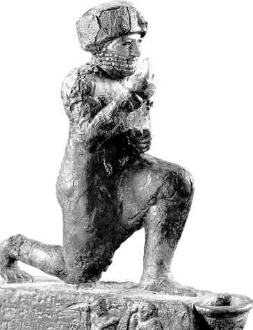 这座祈祷铜像据考证是根据汉谟拉比的形象塑造的,是献给王室守护神阿姆鲁的一件礼品。整座塑像以青铜、黄金、白银制成,底座前方的容器是用来放置祭品的。