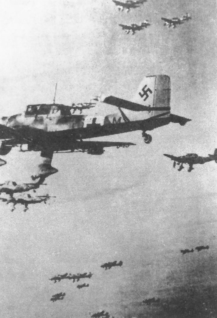 ■ 1941年,德军“斯图卡”式轰炸机在利比亚执行任务。