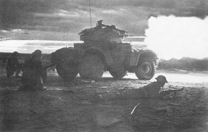 ■ 一辆美军的装甲车与隆美尔非洲军团交火。
