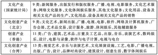 表3-3 国家统计局、北京、香港和台湾对文化产业的分类