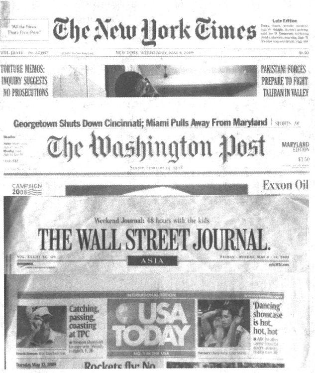 1.The New York Times《纽约时报》,1851年创刊。属苏兹贝格(Sulzberger)家族所有。同《华盛顿邮报》和《洛杉矶时报》一起被列为美国最有影响的三家大报。它内容充实,资料齐全,拥有一批名记者,因而有“博大精深,当之无愧为美国第一大报”之说。在评选优秀报纸的民意测验中,曾多次夺冠,同时,也是获美国最高新闻奖“普利策奖”(the Pulitzer Prizes)最多的一家美国报纸,订户遍及国内外。为了招徕更多的客户,2001年发行网络版。