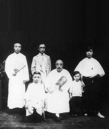 1927年,朱自清的父亲朱鸿钧(左四)与儿孙们在扬州。