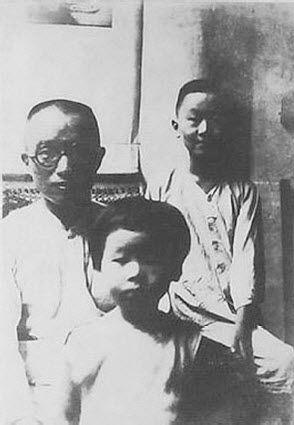 1925年,朱自清与长子朱迈先、长女朱采芷在一起。