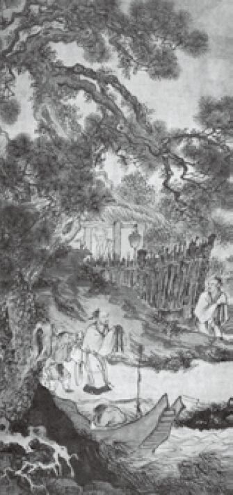 明·周臣《柴门送客图》(取杜甫诗意)