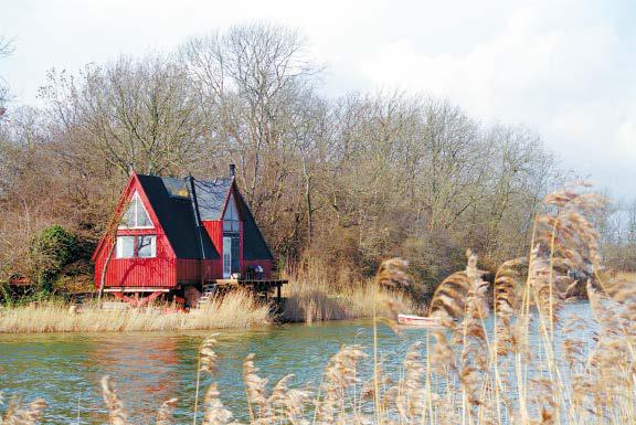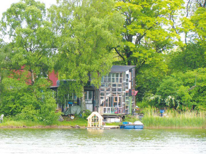 一座只露出尖顶的小木屋歪歪斜斜地插在河畔的茅草丛中,没门没窗。木板墙上只挖了一个五角星形的洞做出入之用;一个飞碟形的小房子肯定是来自一位想象力丰富的文学家的灵感;一座简陋的小屋低矮的房顶上长满茅草,似乎已遭遗弃多年,可窗子上却挂着雪白精致的镂花窗帘;甚至还有一间房子做成了一座白塔的形状,周围用乱石随意砌就的围墙上横七竖八地挂满经幡。