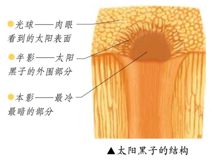 黑子就是太阳表面的黑色斑点。然而,黑子并不是黑色的,只是因为它的温度在4500℃左右,和6000℃的高温区域相比,这些低温区就会显得暗一些,看上去像是黑色的斑点。