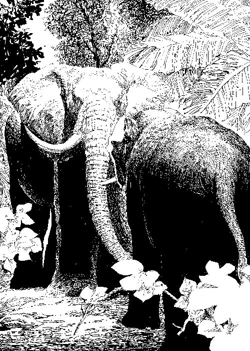 它眨巴眨巴眼睛,再仔细望去,这家伙除了身坯高大健壮和长着一副三尺长的象牙外,其他方面倒确实像雌象。长鼻线条柔顺,皮肤皱襞很少,不像公象那般粗糙,腹部平滑,眉眼间蕴涵着脉脉温情。