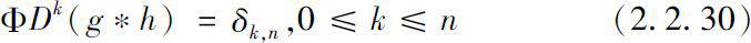 定理1.4.2的证明 :由卷积的定义易知由 S 生成的 ε 的子空间关于卷积运算*是封闭的,因此 ω ( D ) f ω =0。只需验证 f ω 满足(1.4.3)的初值条件即可。由(1.2.14)及(2.2.15),我们有