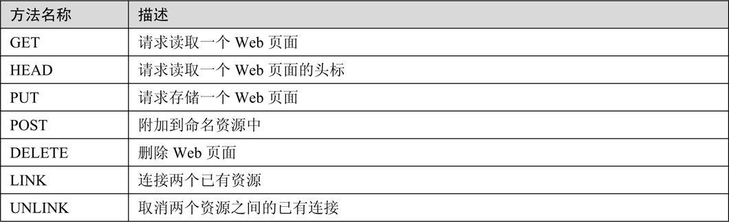 (5)HTTP是基于文本的简单协议。每个Web主机都有一个服务器进程来监听TCP端口80,以便同前来建立连接的客户取得联系。连接建立后,客户发送一个请求,服务器返回一个响应,然后就释放连接。除建立和释放连接外,HTTP事务处理的主要内容是客户机的请求与服务器端的响应,HTTP常用的请求方法如表1-1所示。