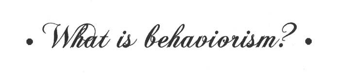 也许,在旧心理学和新心理学之间进行比较的最易举措是,除了行为主义之外,所有的心理学流派都宣称“意识(consciousness)是心理学的论题”。相比之下,行为主义坚持认为人类心理学的论题是“人类存在的行为或活动”。行为主义声言:“意识”既非可界定的,又非一个有用的概念;它不过是远古“灵魂”(soul)说法的另一种表达。因而,旧心理学受制于一种微妙的宗教哲学(religious philosophy)。