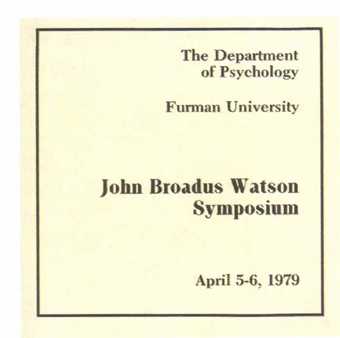 1979年,福尔曼大学为纪念华生诞辰100周年举行了学术会,来自美国的2000多人参加了会议,包括著名的心理学家麦独孤(J. V. McConnell)、凯勒(F. S. Keller)、斯金纳(B. F. Skinner)等。图为该会议的海报。
