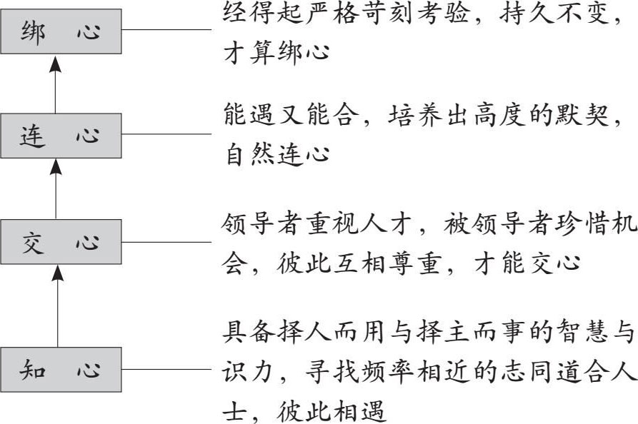 交心。 领导者确信“得人者昌,失人者亡”的道理,重视人才。被领导者明白可事之主难遇,珍惜良机。两者互相尊重,遇而且能合,才能够慎重地交心。