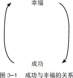 对于那些不认为幸福是最终目标的人,我想告诉他们的是,科学研究已经证明了一点,那就是幸福确实可以帮助人们在生活的方方面面取得更大的成功。在一个对“幸福感”研究的综述中,积极心理学家桑妮娅 . 吕波密斯基、劳拉 . 金,以及埃德 . 迪纳提出,“幸福的人在生活的各种层面都非常成功,包括婚姻、友谊、收入、工作表现以及健康状况”。报告也指出了幸福和成功之间存在强烈的相互作用:成功(无论是工作还是感情方面)可以带来幸福,而幸福本身也可以带来更多的成功(见图3-1)。
