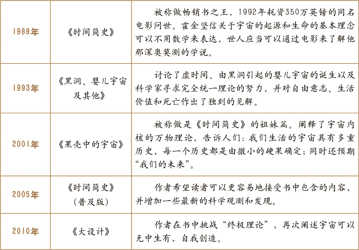 最受欢迎的物理学作家霍金的主要科普作品