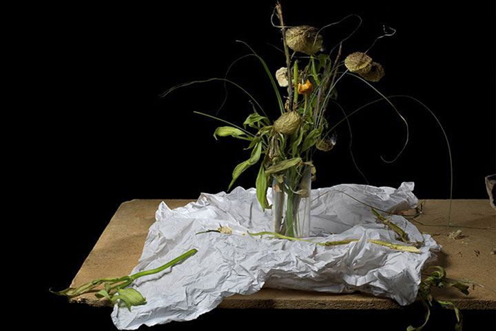 朱喆是我们目前代理年龄最小的艺术家,1993年出生,目前在纽约视觉艺术学院读摄影,但作品十分成熟,我们的艺术家和藏家都很欣赏他的才华。朱喆的维尼塔斯系列用摄影的方法模仿17世纪荷兰静物油画虚空派(vanitas),用自己日常生活使用的物品代替传统荷兰静物画中的元素,如干花、器皿、尘埃、纸巾、骨头等,照片捕捉的是这些物品在他生活中衰败和消逝的过程,从而折射出自己生命的轨迹,而在这个过程中他想探讨的是摄影和绘画这两种媒介的不同。朱喆同时也有自己的摄影博客Tender Ardour,发布自己对摄影展、摄影师和摄影理论的观点。对了,朱喆和杨嘉茜是男女朋友,非常可爱的一对,他们还运营一个叫“灶头间”的美食生活博客,用摄影和文字记录关于设计、生活、美食、艺术的点滴心得。