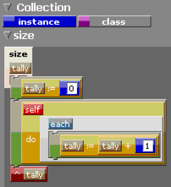 Scratch软件是一款开放源代码的软件,制作这个软件的所有代码都是公开的,上图就是根据个人的需要更改Scratch软件的一个过程。这说明Scratch软件只是一个结果,而过程的核心指导思想,是用图形化和颜色来让任何人都能够学习和理解程序,而这个过程,是通过最后的结果呈现出来的。由于Scratch软件是一款开放源代码的软件,因此就有各种各样的改进版本,比如,由约翰霍普金斯大学两位软件工程师共同研发BYOB这个版本,将Scratch软件的应用范围从中小学提升到大学生,同样的一个代码,结构却更加简洁。事实上,在哈佛大学等美国顶尖大学,很多学校都将Scratch软件作为大学生入门程序设计的初始软件,现在程序设计的核心概念在其中均有涉及,并且加上硬件的输入和输出设备,能够让成年人在学习程序最开始的时候,就能够对程序的应用领域有一个立体的概念。因此,终生幼儿园项目,并不仅仅是针对青少年的,而且由于所有的软件都是通过程序编写,因此程序就有可能成为不同软件之间沟通信息的桥梁,一个软件的输出信息,可以成为另外一个软件的输入信息。比如,添加了一个插件的Scratch软件,能够成为著名的仿真游戏——第二人生的输入信息设备,并且控制其中角色的行为。