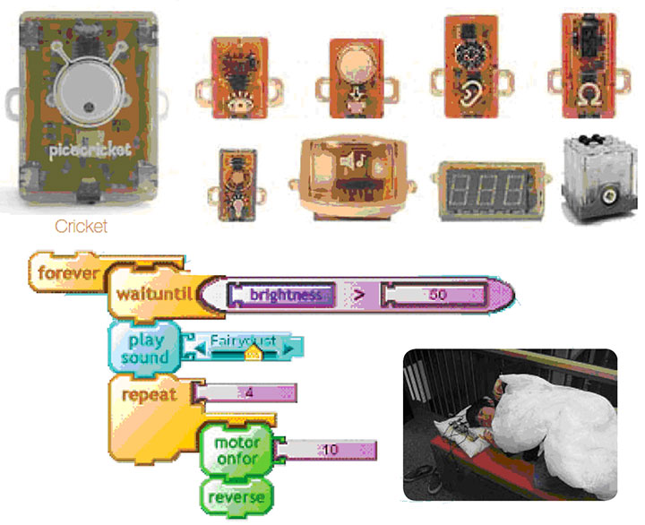 在头脑风暴机器人开发之后,终生幼儿园团队继续开发了一款能够放在迷你头脑风暴机器人中的名叫PicoCricket的硬件。它更加小巧,编程环境和现在的Scratch软件非常类似,而事实上这个环境就是Scratch软件的前身。PicoCricket的设计想法,除了影响了Scratch软件的编程环境的样貌,更重要的是它提供了一种新的机器人的应用领域,机器人不再是一个像人一样的,能够对外界环境作出反应的小车,而是而是孩子的生活伙伴。