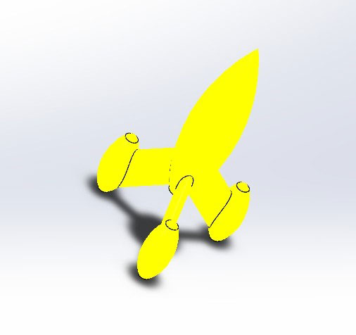 8. 退出草图,选择特征中的扫描,以草图4为轮廓,草图5为路径,扫描凸台体,得到: