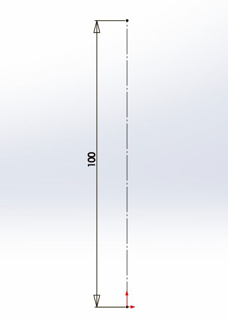 1. 新建模型,选择草图”,选右视视图作为草图基准面,以草图原点作起点向上画一条构造线,标好长度为100,这是火箭身体的高。