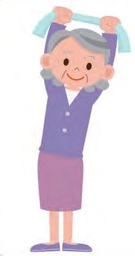 老年高脂血症患者在进行运动锻炼之前,可利用身边小物件做简单的拉伸动作。以毛巾举例,双手拉住毛巾两端,举起至耳后,双臂以“左左右右”为顺序摆动,活动上身。