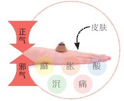 施灸时体内的经气会被艾火激发和推动,经气在运行的过程中与患病处的邪气抗衡,经气战胜邪气之后,邪气就会外泄,因而会引发一系列灸感现象,如患者自我感知的热、风、凉、寒、麻、胀、酸、疼、痛等感觉。灸感的发生是艾火的热力与药力双重作用的结果,是艾火循环与病气在体内斗争的表现。灸感的发生与否直接关系到灸疗效果的好坏。