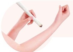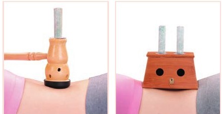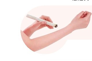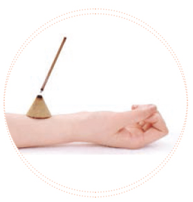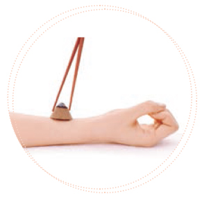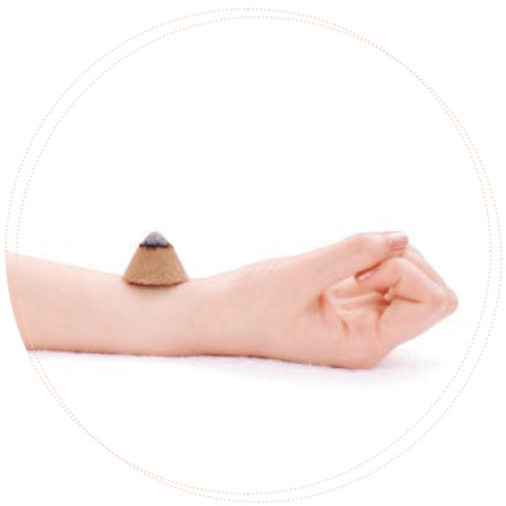 3 艾炷在皮肤上燃烧,根据所需效果,留意被施术者的身体情况。