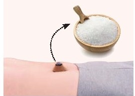 也可以在食盐上放置姜片后再开始施灸,以防止食盐受火爆起导致烫伤。