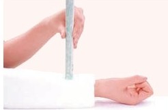 (2)将艾条点燃,乘热按到施灸部位,使热力透达深部。