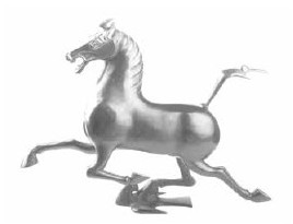 1969年在甘肃省武威发现了一座东汉时期的墓葬。从墓中挖掘出大量的铜铸车马。在这些铜马中,有件最有价值的青铜奔马,令人叹为观止。这件青铜奔马昂首长嘶,神速飞奔,四蹄灵活地舒展着,其中一只蹄子踏在一只飞鸟的身上。人们根据这件雕塑的造型把它称为“马踏飞燕”。近几年有些专家考证认为,雕塑中的这个飞燕是古代传说中的“龙雀”,而马是神马,是“天马”。这更为这件雕塑增添了不少神秘色彩,使这件作品的意境变得更加深远,有一种“天马行空”的感觉。