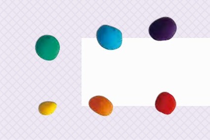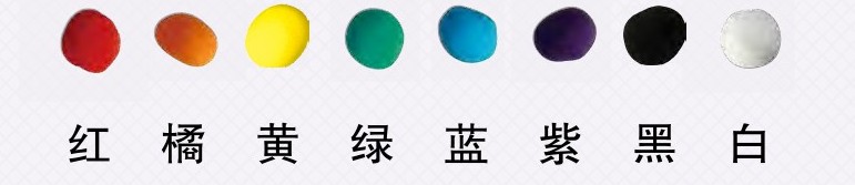 1 取红、橘、黄、绿、蓝、紫六种颜色彩泥。