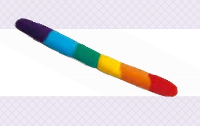 2 将六种颜色的彩泥捏成长条,连在一起。