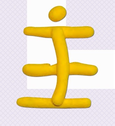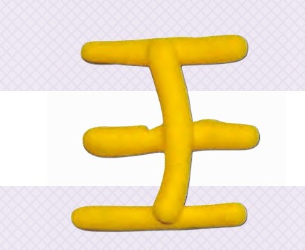 2 再取黄色彩泥搓成长条,组成“二”字。