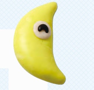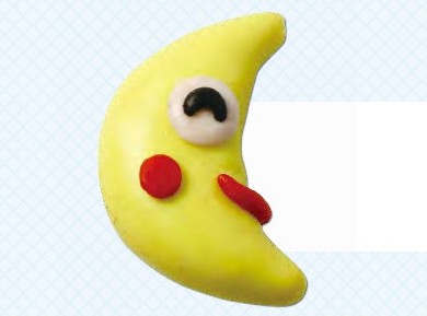 5 将做好的红色彩泥粘在主体上(如图)做出嘴和脸蛋,这样月亮就完成了。